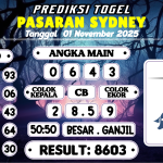 Bocoran Mbah Syair Sydney Hari Ini Sabtu 01 November 2025