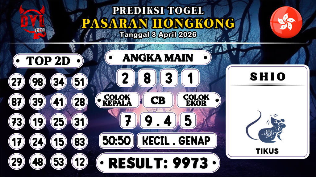 Prediksi yang bagus dan jitu harus dimainkan hanya pada Bandar Togel Terpercaya. Mengapa? Karena banyak sekali Bandar Togel Online di luar sana yang tidak bertanggungjawab atau biasa disebut Bandar Rampok. Untuk itu Kami Prediksi Boss sangat merekomendasikan Agen Togel Online DVLTOTO yang sudah sangat terpercaya sejak 2015 dan sudah ribuan member berhasil withdraw dengan nominal Ratusan juta setiap harinya. Demikianlah Prediksi Hongkong Hari Ini Jumat 3 April 2026 yang di berikan di atas. Salam Jackpot!–