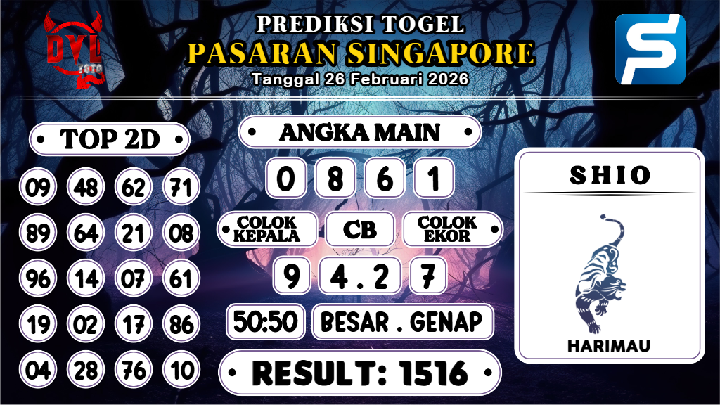 dimainkan hanya pada Bandar Togel Terpercaya. Mengapa? Karena banyak sekali Bandar Togel Online di luar sana yang tidak bertanggungjawab atau biasa disebut Bandar Rampok. Untuk itu Kami Prediksi Boss sangat merekomendasikan Agen Togel Online DVLTOTO yang sudah sangat terpercaya sejak 2015 dan sudah ribuan member berhasil withdraw dengan nominal Ratusan juta setiap harinya. Demikianlah Prediksi Singapura Hari Ini Kamis 26 Februari 2026 yang di berikan di atas. Salam Jackpot!–