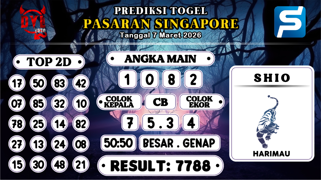 dimainkan hanya pada Bandar Togel Terpercaya. Mengapa? Karena banyak sekali Bandar Togel Online di luar sana yang tidak bertanggungjawab atau biasa disebut Bandar Rampok. Untuk itu Kami Prediksi Boss sangat merekomendasikan Agen Togel Online DVLTOTO yang sudah sangat terpercaya sejak 2015 dan sudah ribuan member berhasil withdraw dengan nominal Ratusan juta setiap harinya. Demikianlah Prediksi Singapura Hari Ini Sabtu 7 Maret 2026 yang di berikan di atas. Salam Jackpot!–