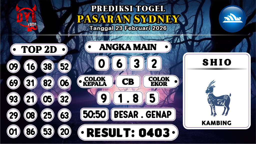 Prediksi Togel Sidney 23 Februari 2026